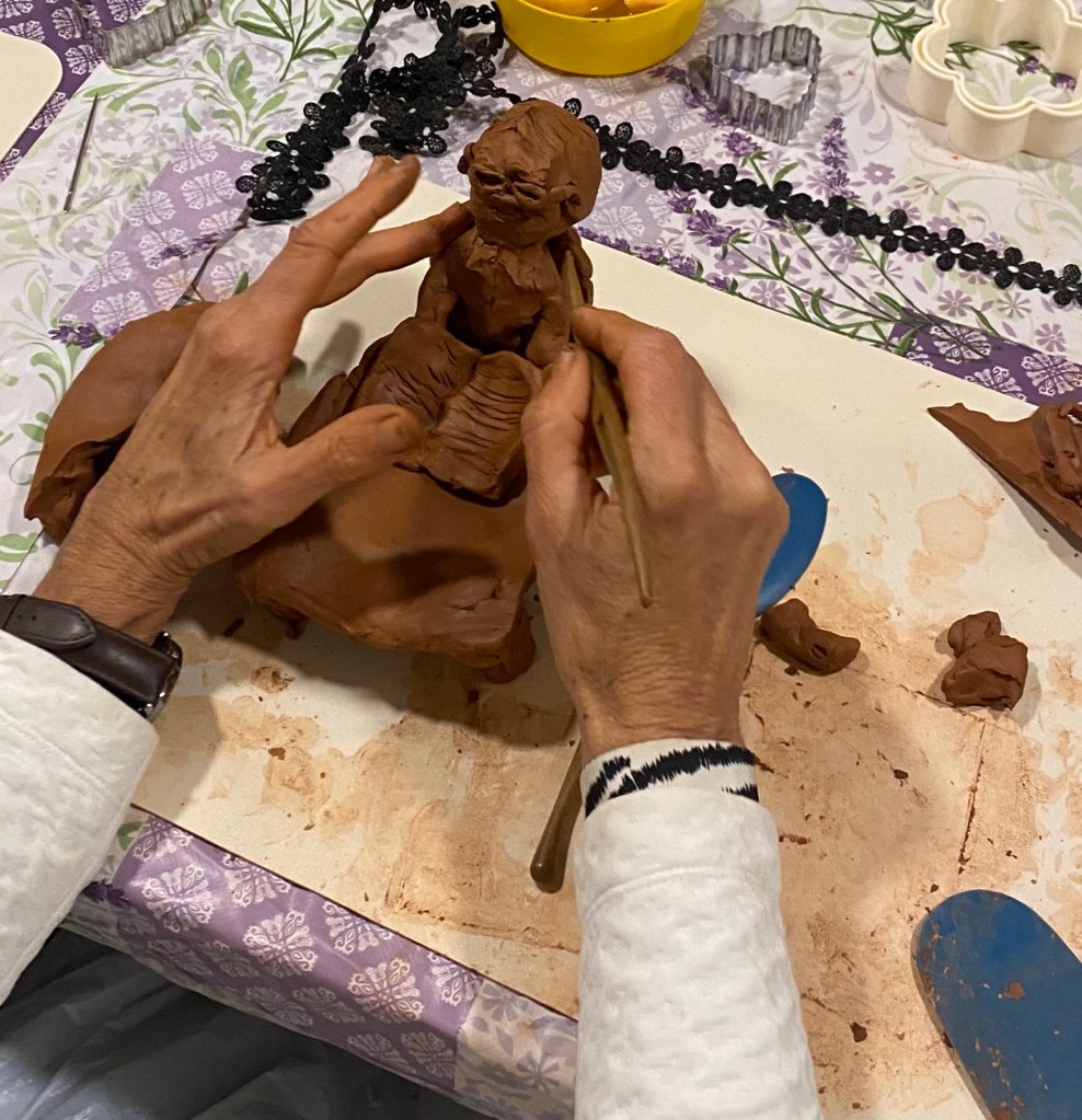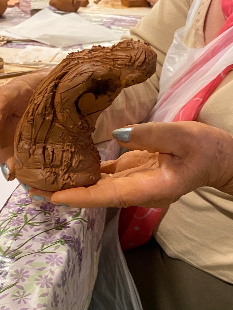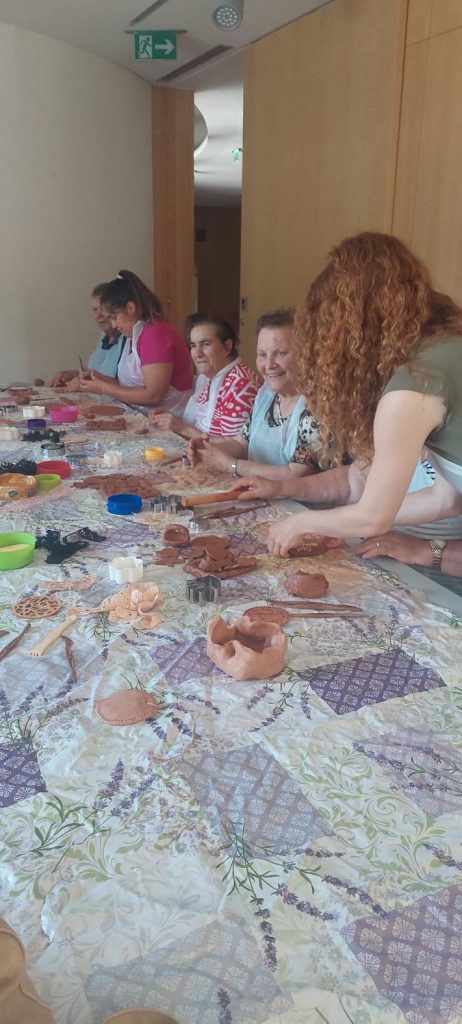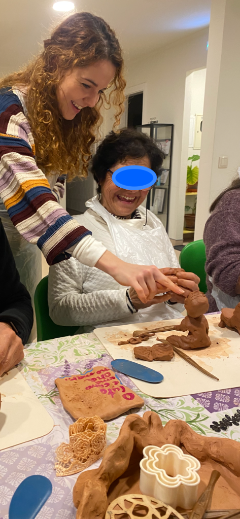 During my work in Albergaria-Velha I encountered and worked with individuals who experienced many different losses. Some of them lost their spouse, their children, while others lost homes, pets and also, their independence. While working with the group, I observed how clay work aids to express and to communicate one’s stories; for some, it was the very first time they decided to share some of their feelings, bereavement, their grief. They were able to open up and to share their inner most selves. Clay work helped to get closer to oneself, to see what is it that one goes through..or… went through. It was quite interesting to see that some of the bereaved individuals were rather sceptical in the begging, hesitating, not quite understanding how could these two go together: “clay and grief?” How?