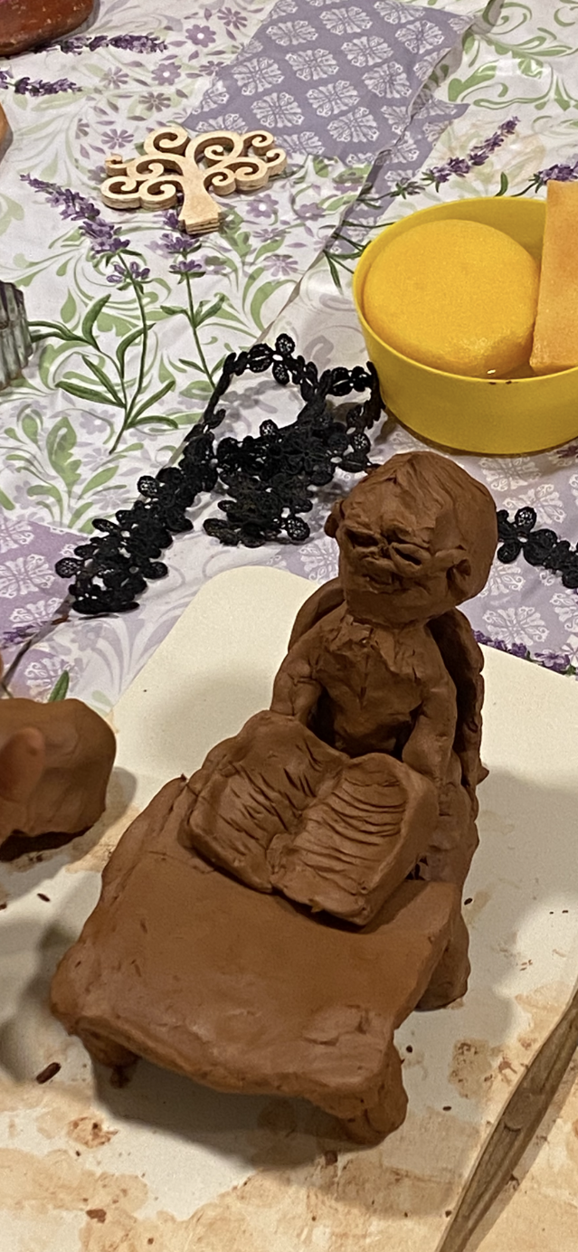 Sometimes the words are not enough, sometimes it seems impossible to find any words at all, and at other times, words are explored. Clay work helps with finding words and provides a new, innovative method of self expression, a new method of expressing grief.